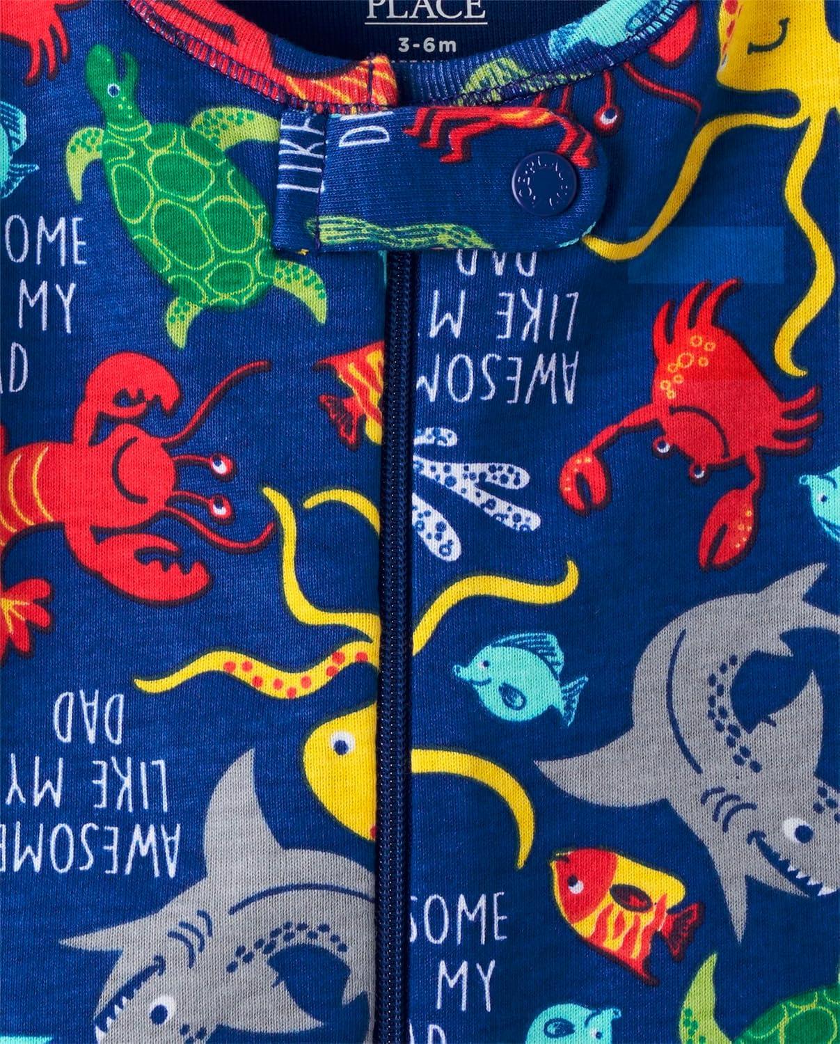 The Children’s Place Baby Boys’ Short Sleeve 100% Cotton Zip-Front One Piece Footless Pajamas(Blue Sea Creature)