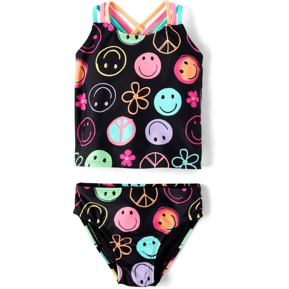 The Children’s Place Baby-Girls and Toddler 2 Piece Tankini Swimsuit(Black Doodle Icons)
