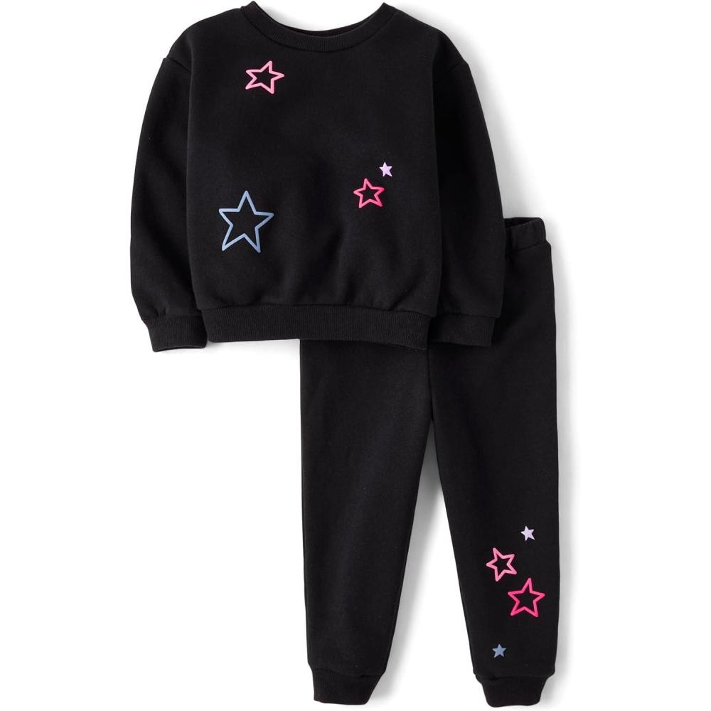 The Children’s Place baby-girls And Toddler Long Sleeve Active Shirt and Pant, 2 Piece Outfit(Black Stars)