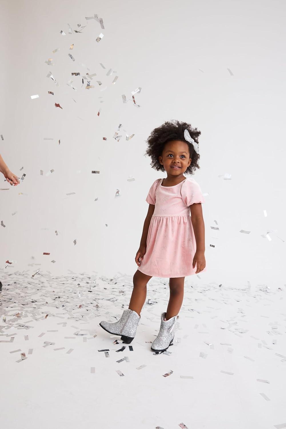 The Children’s Place Baby Girls’ and Toddler Short Sleeve Dressy Dresses(Lt Plum Glitter Bows)