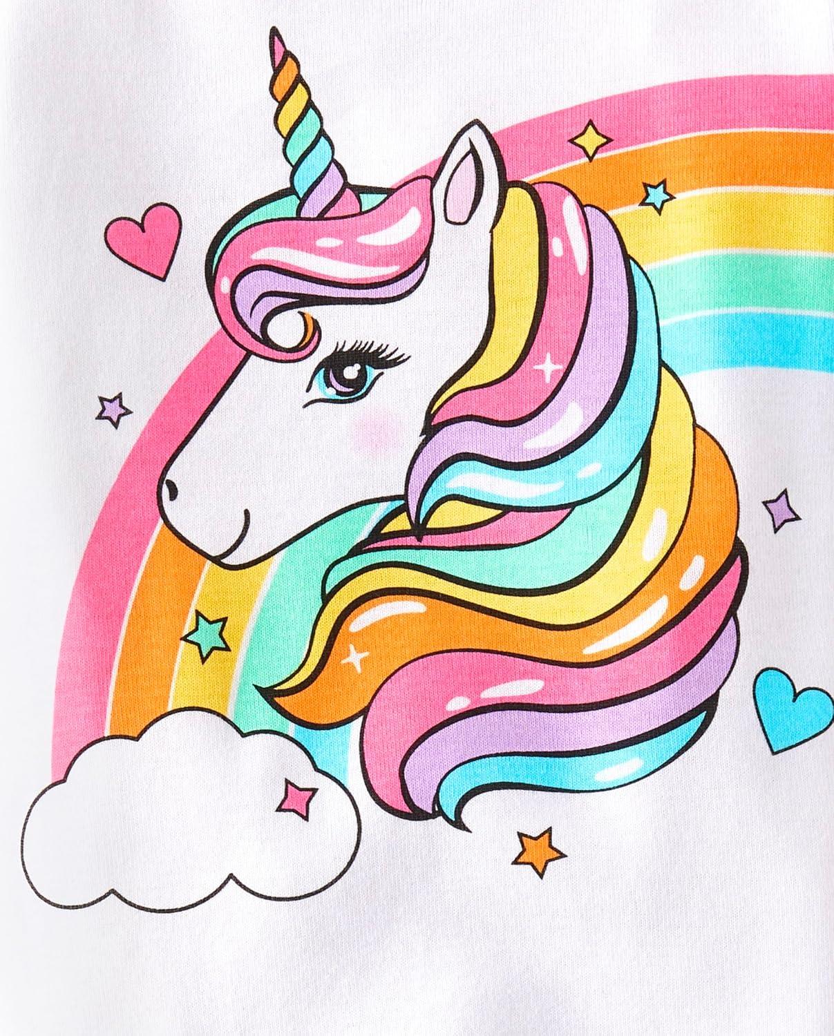 The Children’s Place Baby Toddler Girl Sleeve Top and Shorts Snug Fit 100% Cotton 2 Piece Pajama Set(Pink Rainbow Unicorn)