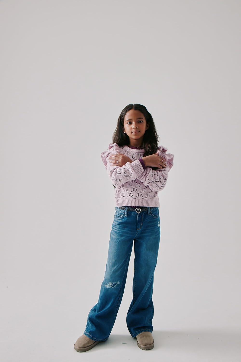 The Children’s Place Girls Long Sleeve Crew Neck Pullover Sweater(Lilac Ruffle)