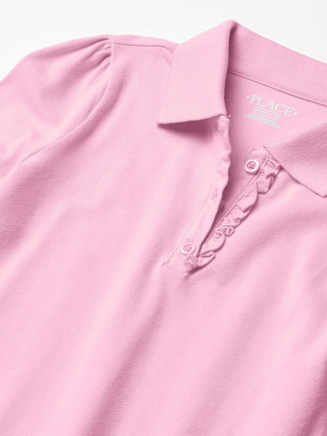 The Children’s Place Girls’ Long Sleeve Ruffle Pique Polo(Sparkle Pink Single)