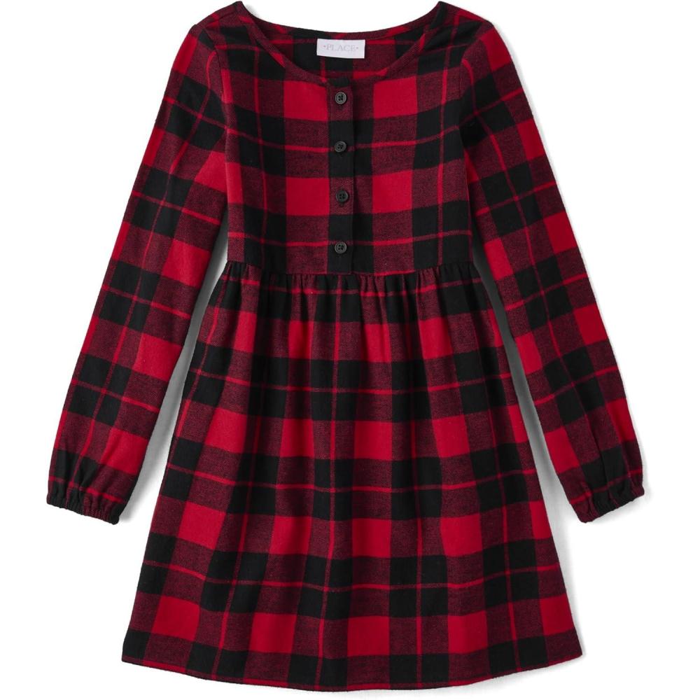 The Children’s Place Girls Long Sleeve Sweater Dress(Red Buffalo Plaid)