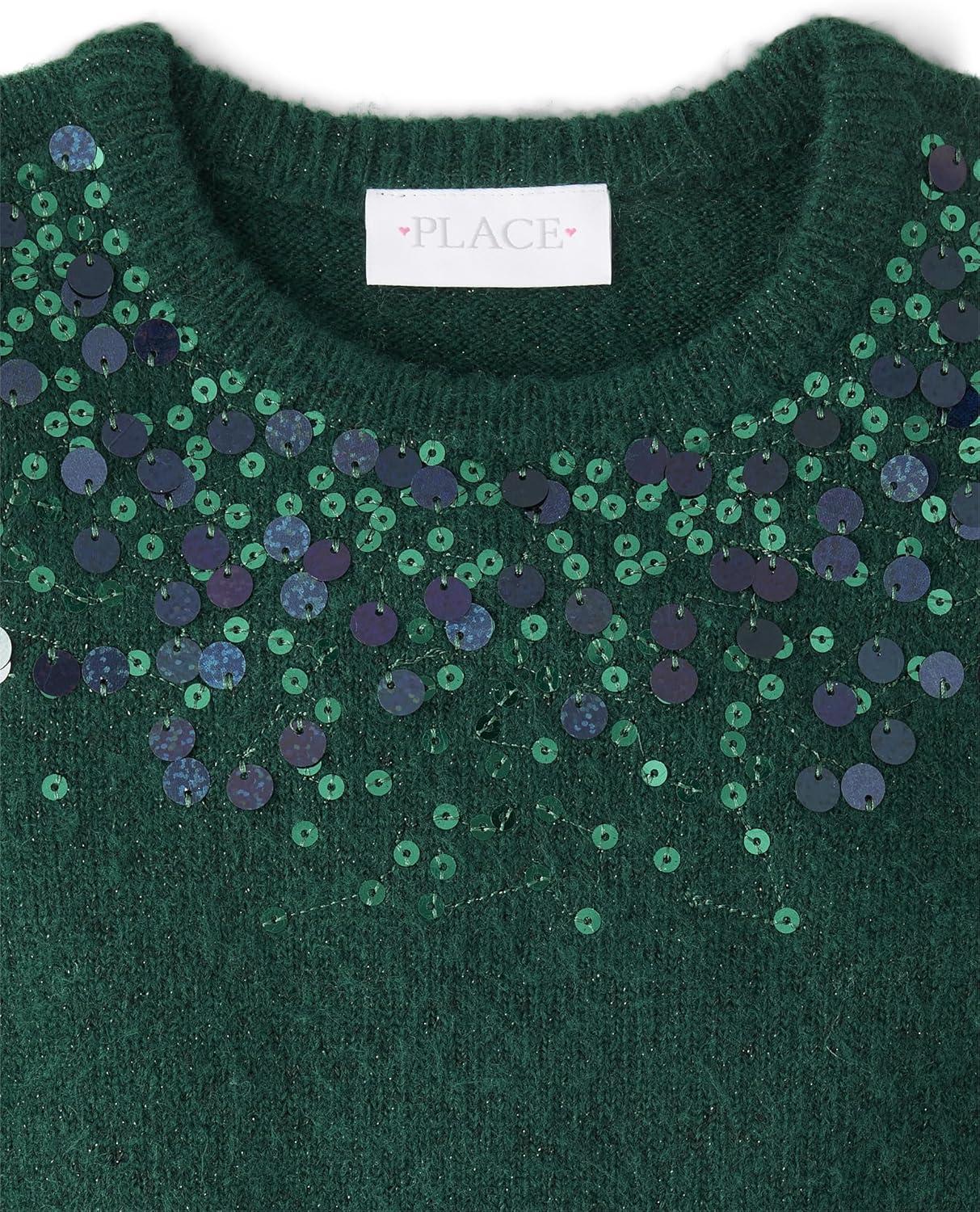 The Children’s Place Girls Long Sleeve Sweater Dress(Sequin Spruceshade)