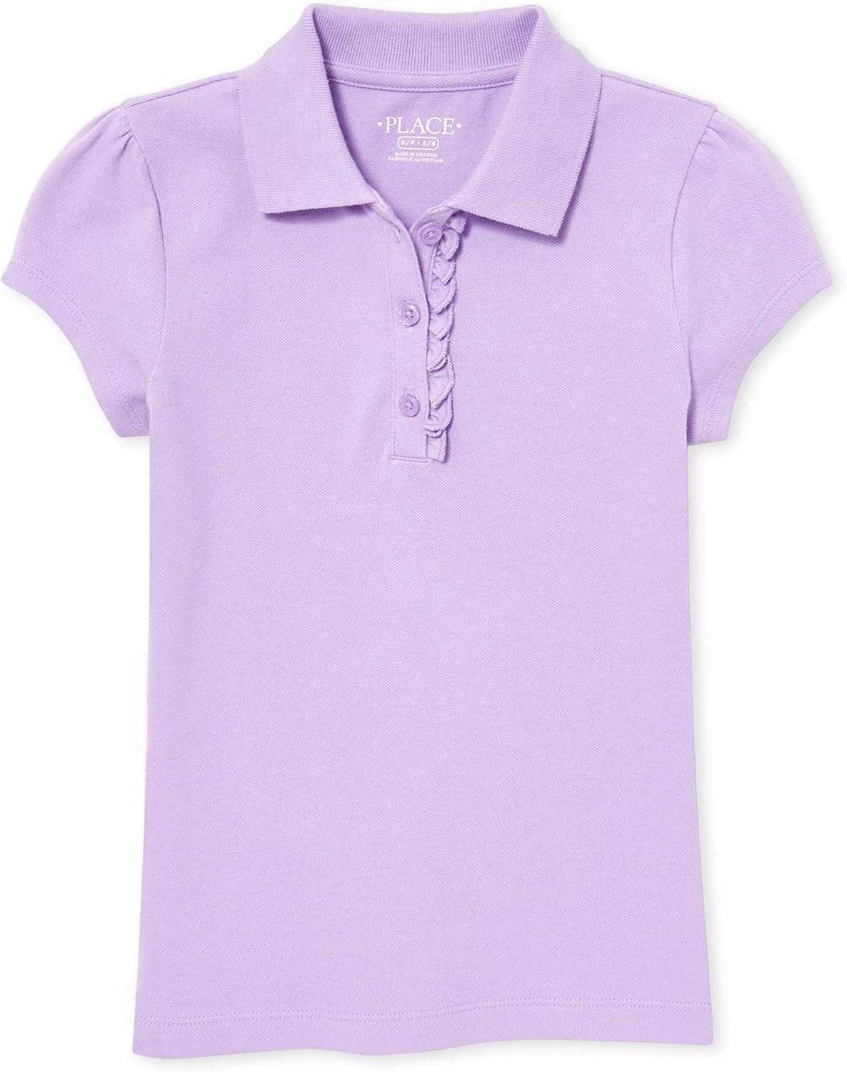 The Children’s Place Girls’ Short Sleeve Ruffle Pique Polo(Purple Prose)