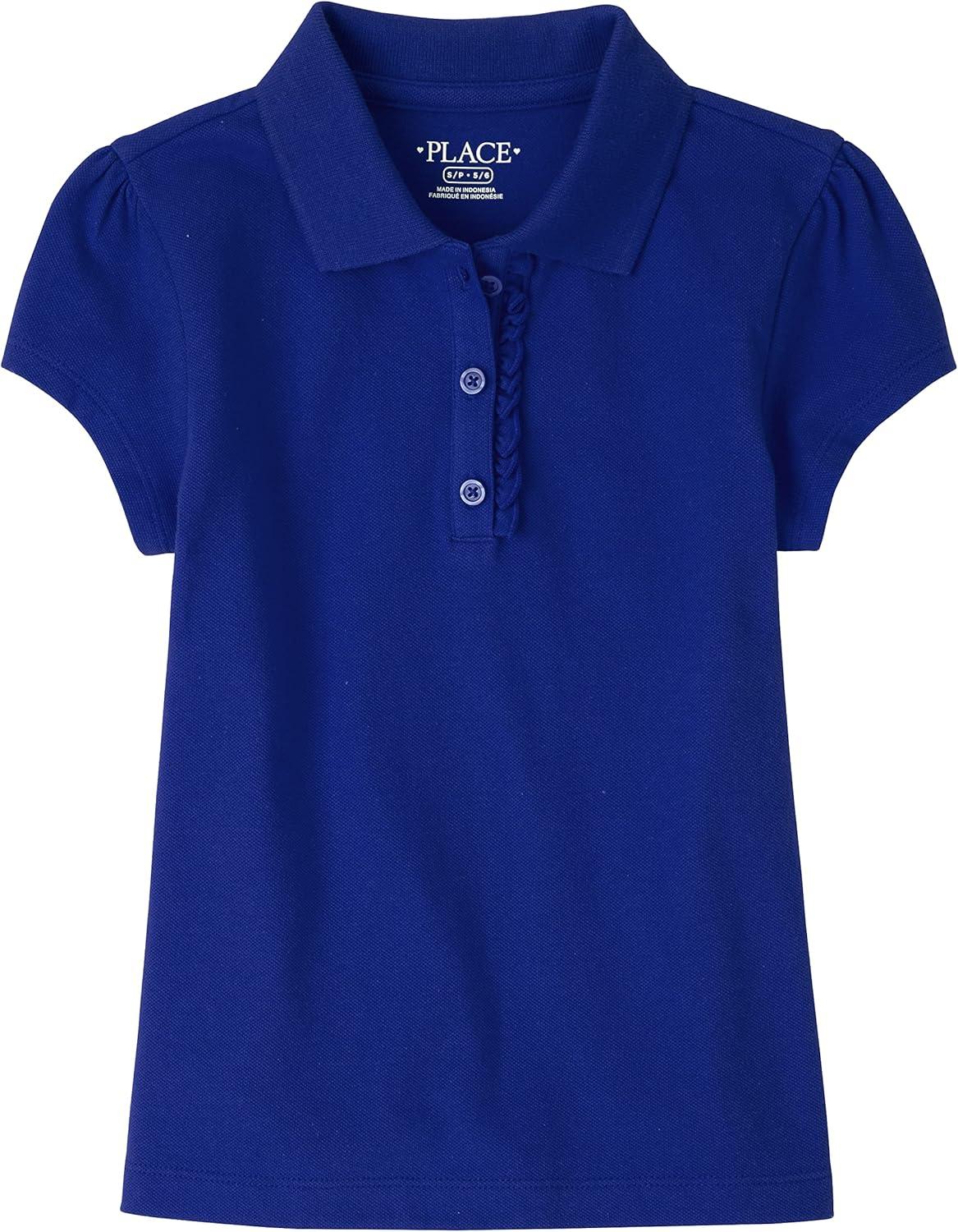 The Children’s Place Girls’ Short Sleeve Ruffle Pique Polo(Renew Blue)