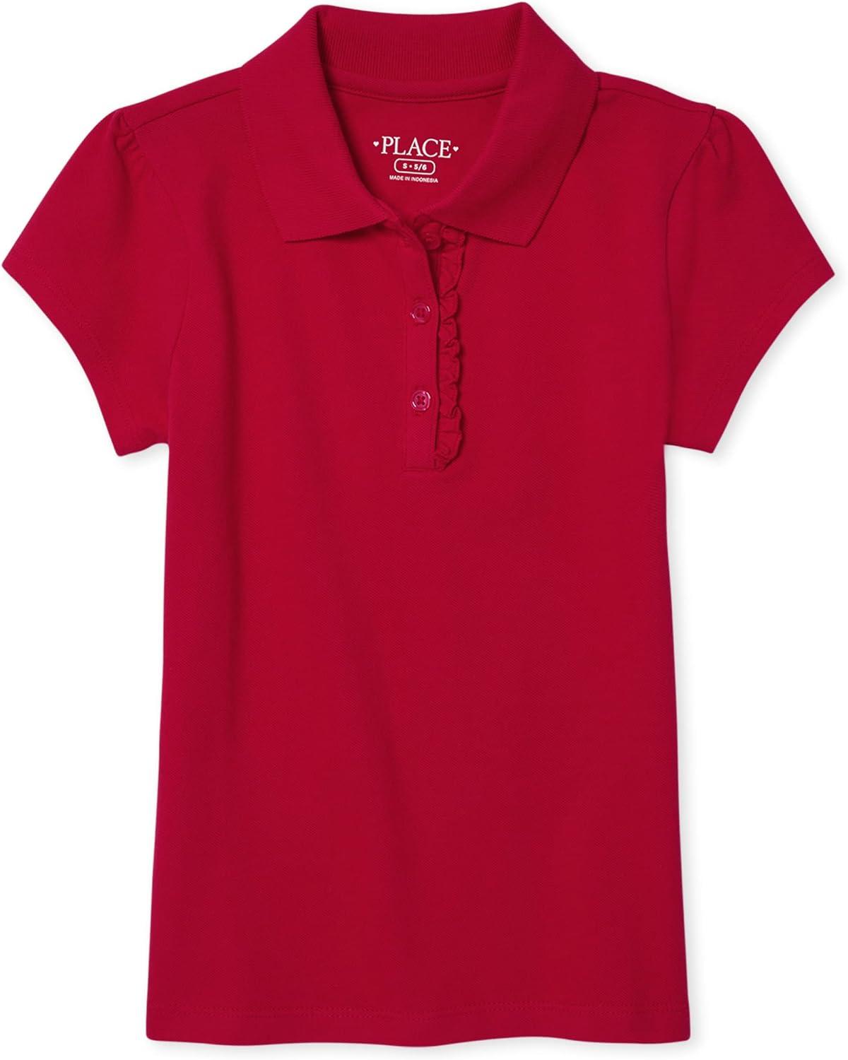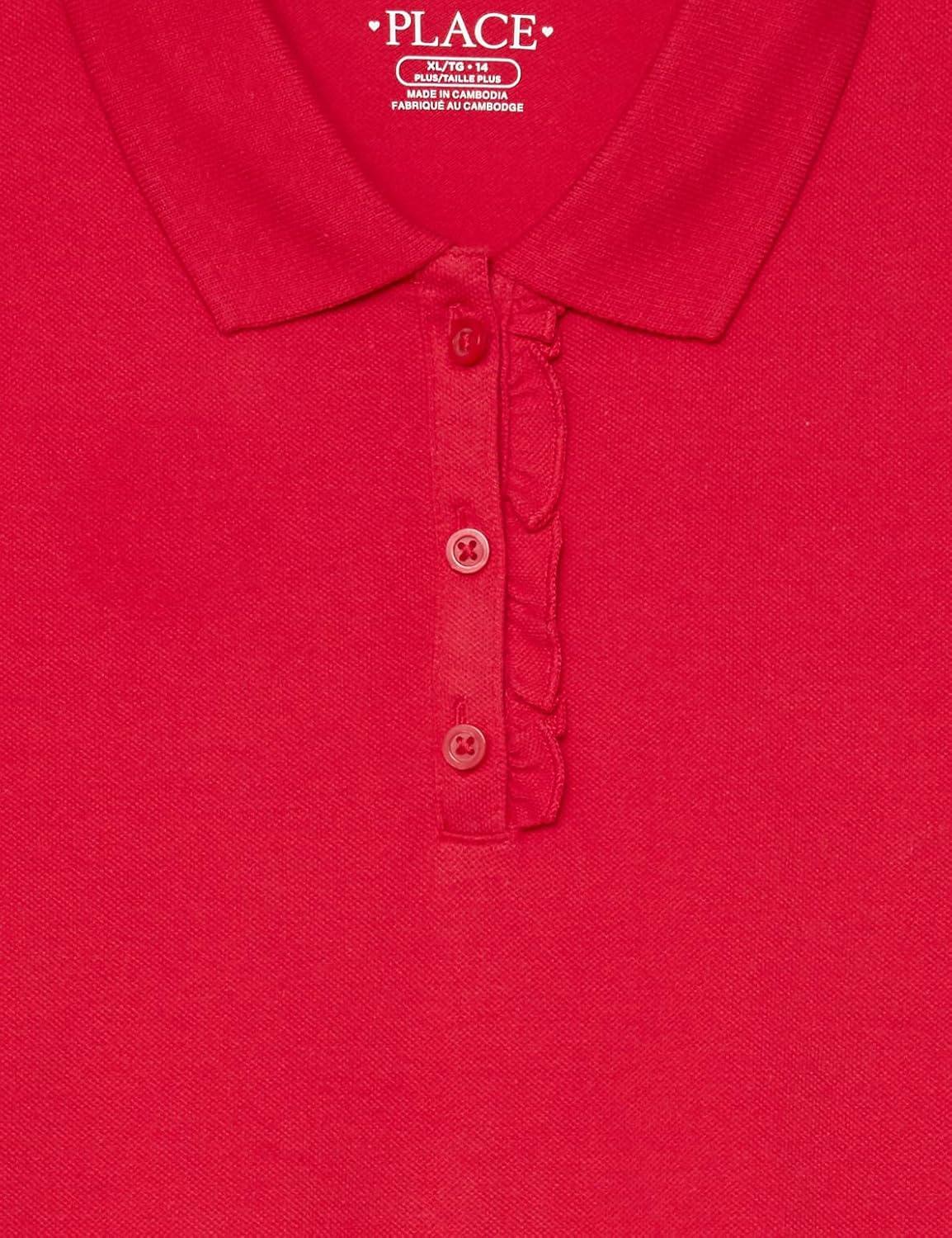 The Children’s Place Girls’ Short Sleeve Ruffle Pique Polo(Ruby)
