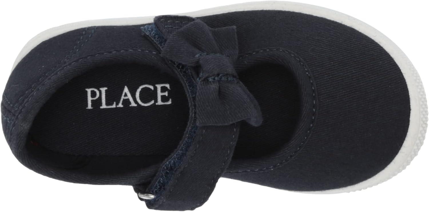 The Children’s Place girls Uniform Bow Strap Canvas Sneakers(Navy Bow)
