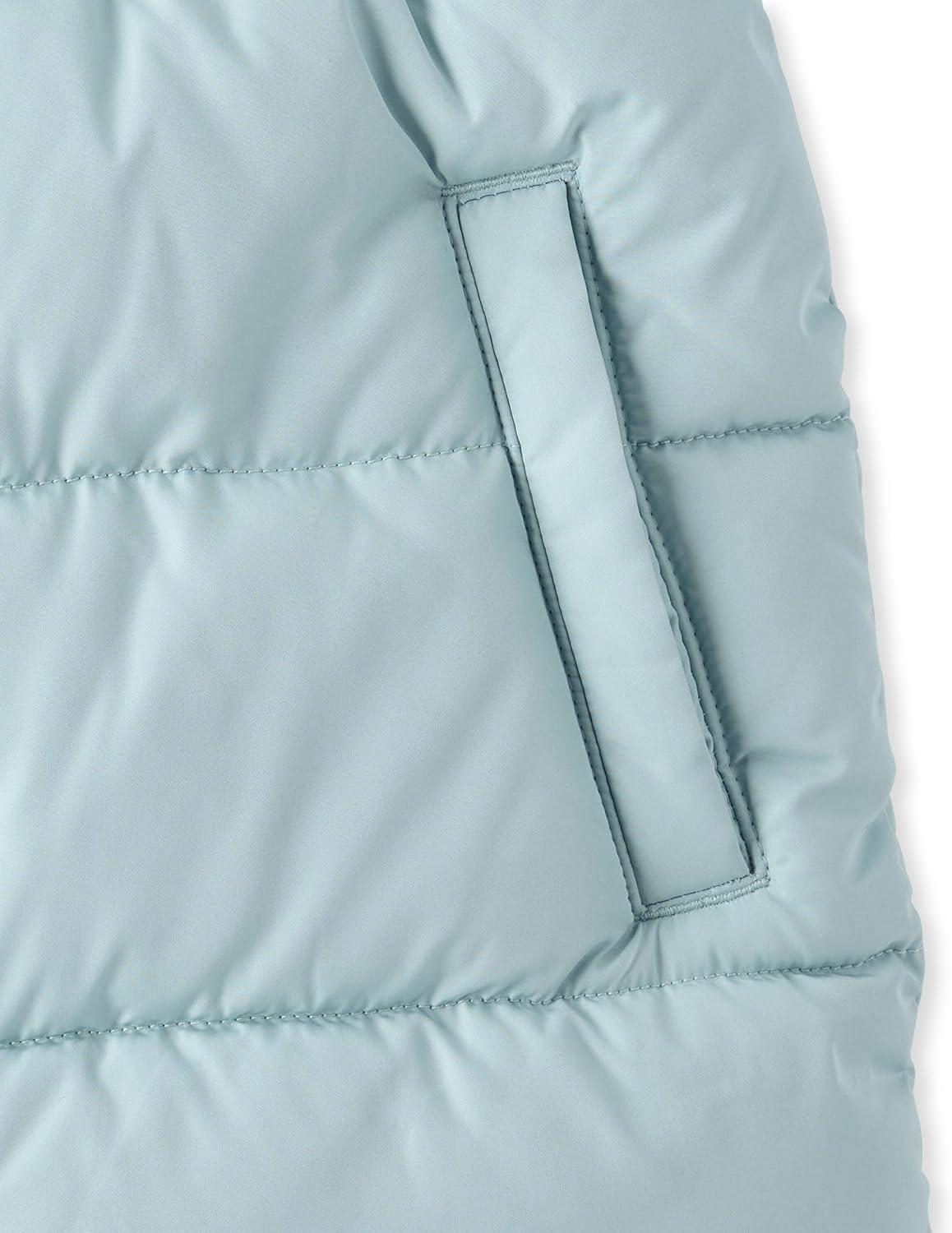 The Children’s Place girls Water and Wind Resistant Hooded Zip Front Mid Length Puffer Jacket, Faux Fur Lined(Frosty)
