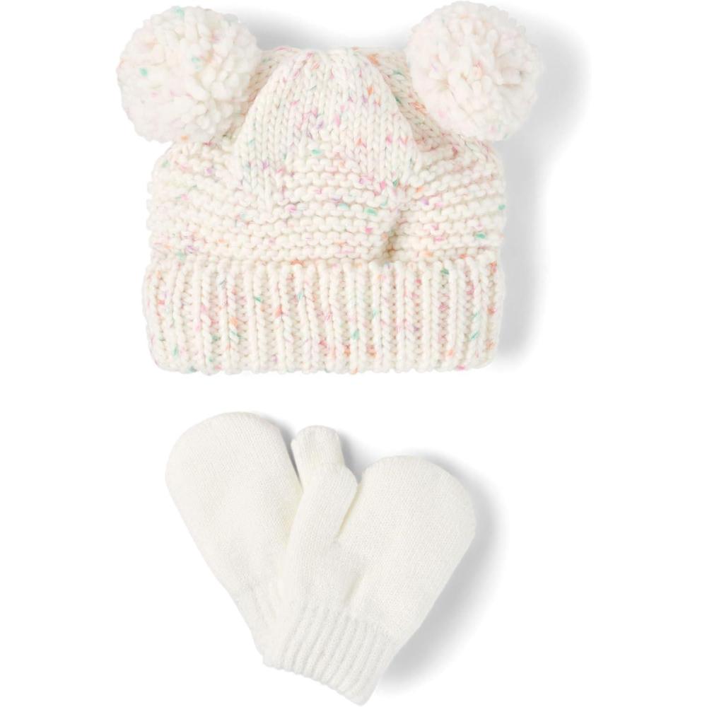 The Children’s Place Unisex Baby And Toddler Winter Hat and Mittens Cold Weather Set(Pink Multi Pom Set)